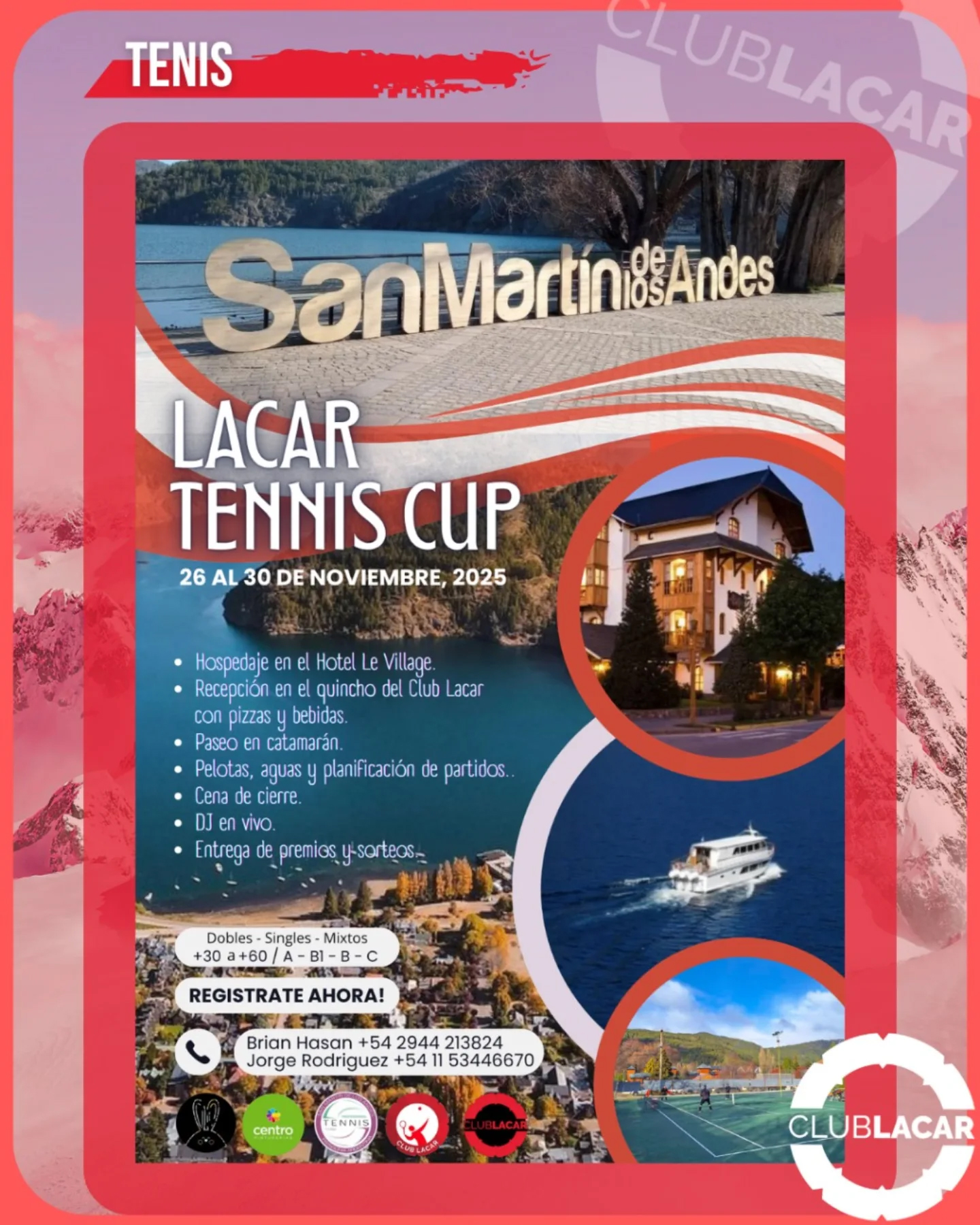 San Martín de los Andes se prepara para vivir una nueva fiesta del tenis del miércoles 26 al domingo 30 de noviembre en el Club Lácar, lugar que será la sede del Lacar Tennis Cup 2025, un torneo nacional de seniors no federativo que promete convocar a tenistas de todo el país.