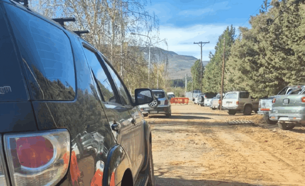 La obra no puede avanzar hasta que los propietarios de varios vehículos que permanecen estacionados día y noche allí se acerquen a retirarlos. Esta práctica es habitual y se normalizó con el correr de los años debido a que no se cobra por estacionar en el Aeropuerto Chapelco.