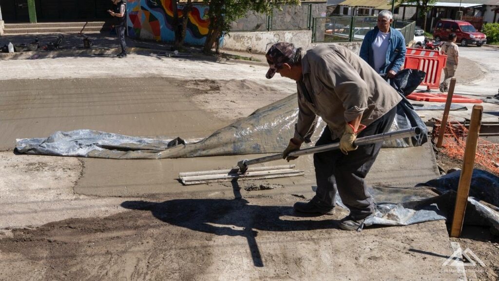 La cuadrilla de Obras Públicas completó de hormigón los casi 500 metros de la calle Los Pinos, que permite que el pavimento llegue desde Las Mosquetas hasta el Cpem 57 y hasta el corralón municipal.