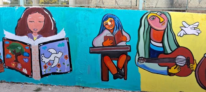 Los murales comenzaron a pintarse a inicios de noviembre, con la participación de toda la comunidad de la escuela, maestras, profesores y auxiliares de servicio, y familias.