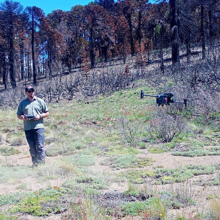 Asimismo, se trabajó con un helicóptero del Sistema Nacional de Manejo de Fuego; y en colaboración con personal de la Secretaría de Emergencias de Neuquén, que aportó un dron con cámara térmica.