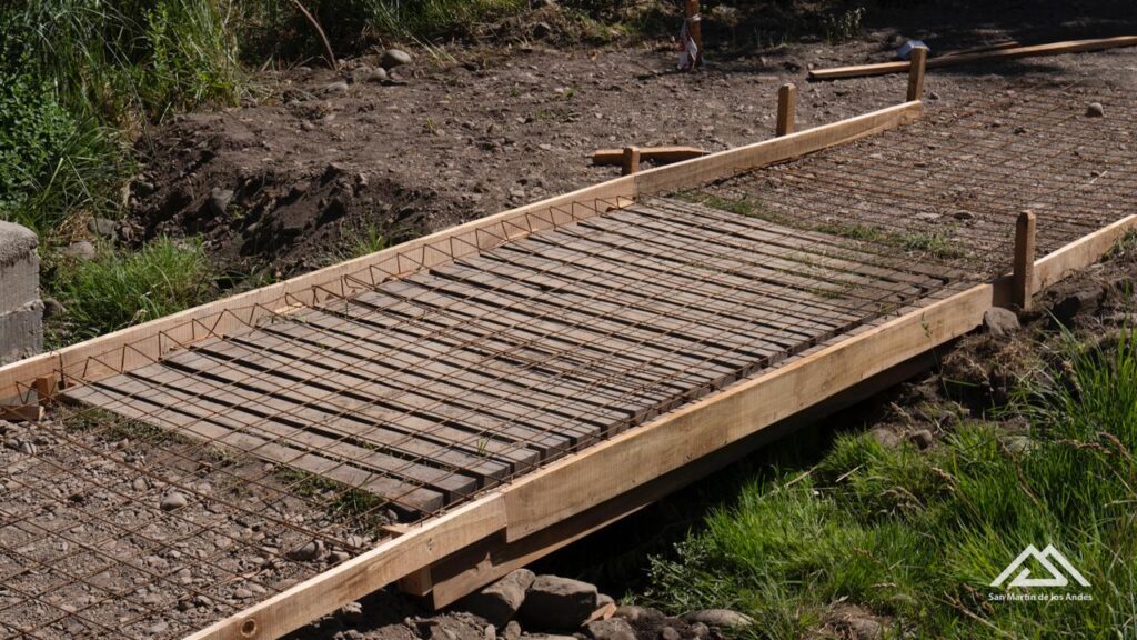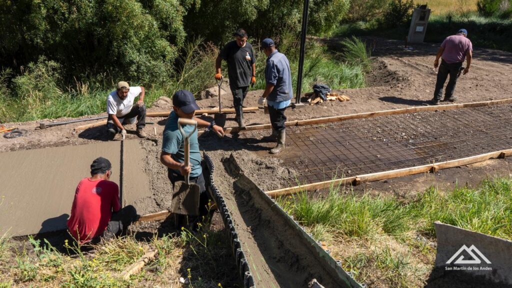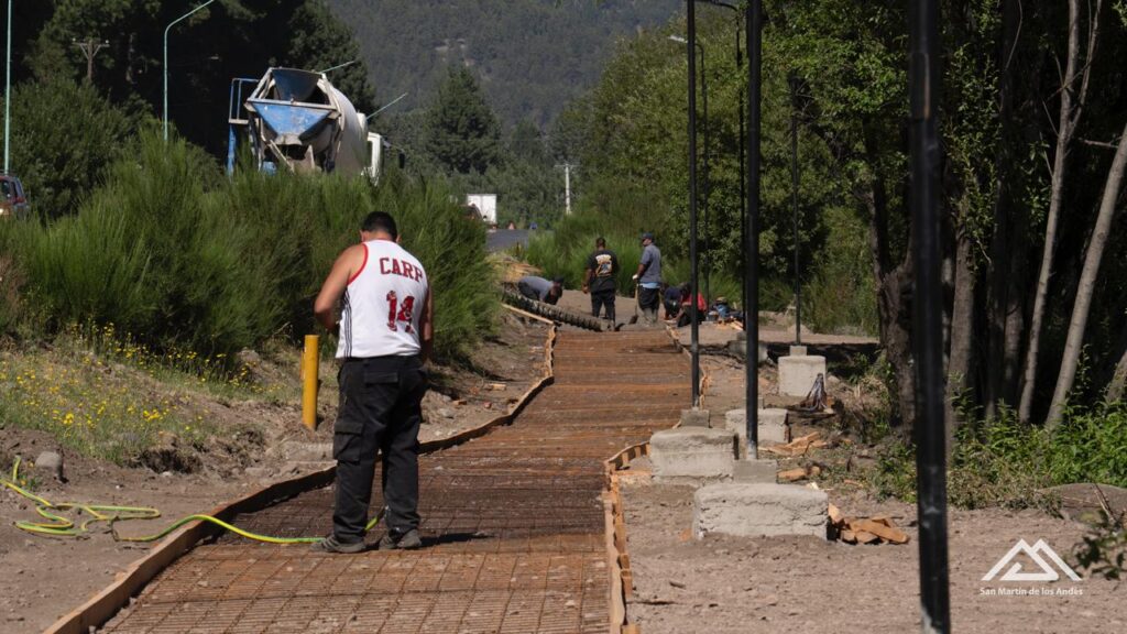 Operarios de la Subsecretaría de Obras Públicas comenzaron a hormigonar la senda para peatones y bicicletas entre el Supermercado La Anónima y Callejón de Bello.