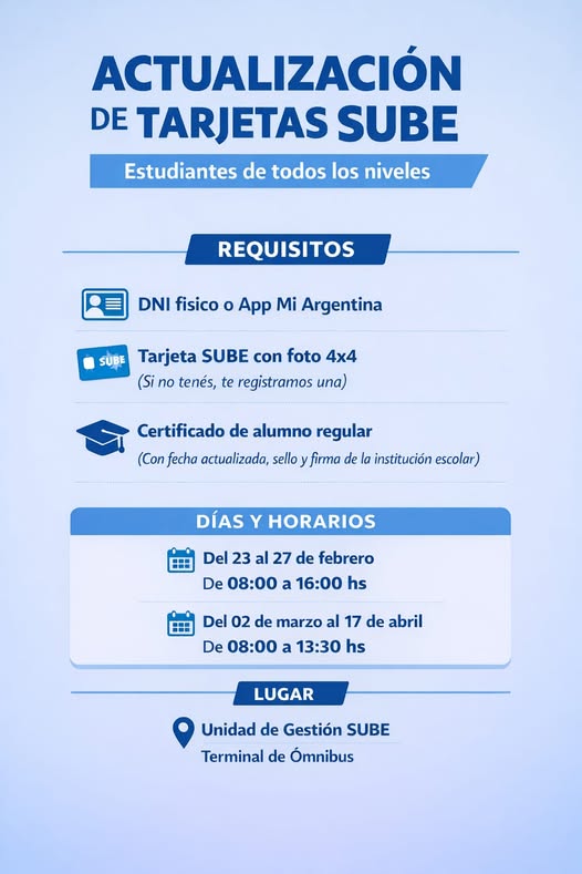 Desde el área recordaron la importancia de realizar la actualización para mantener vigente el beneficio estudiantil en el transporte público y evitar inconvenientes al momento de utilizar el servicio.