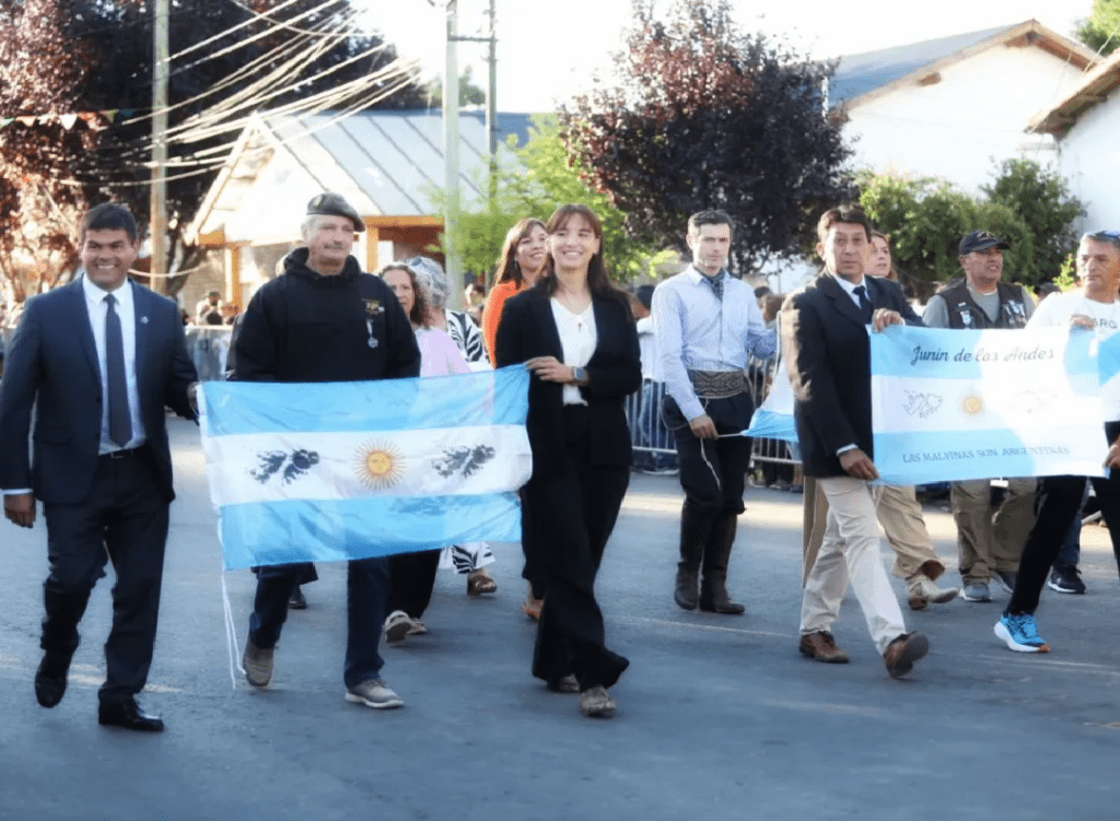 La ministra de Turismo, Ambiente y Recursos Naturales, Leticia Esteves y el intendente Luis Madueño encabezaron el acto aniversario por los 143 años de Junín de los Andes. Participaron funcionarios provinciales, instituciones y vecinos de la comunidad.