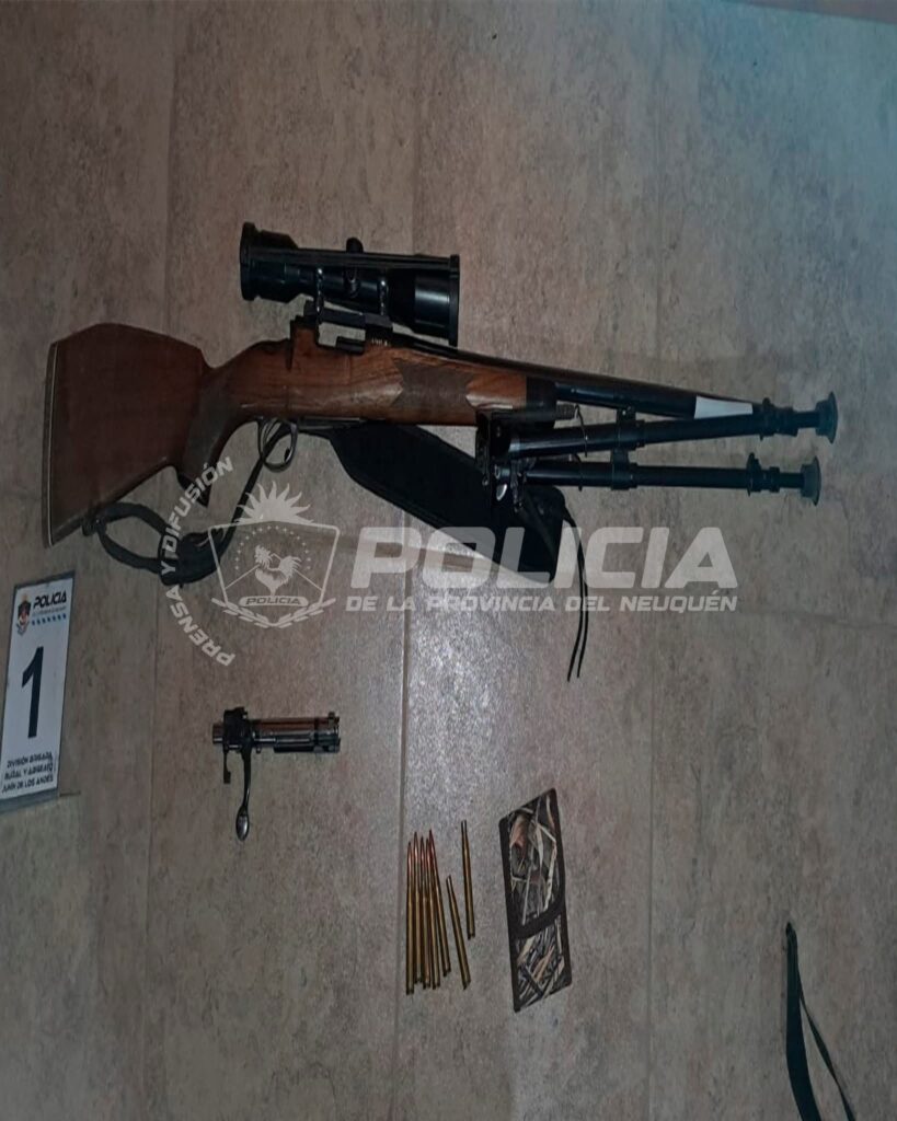 Durante el procedimiento se identificó a los dos ciudadanos, constatándose que uno de ellos transportaba un fusil Mauser Modelo Argentino 1909, calibre .300 Holland & Holland Magnum, con mira telescópica.
