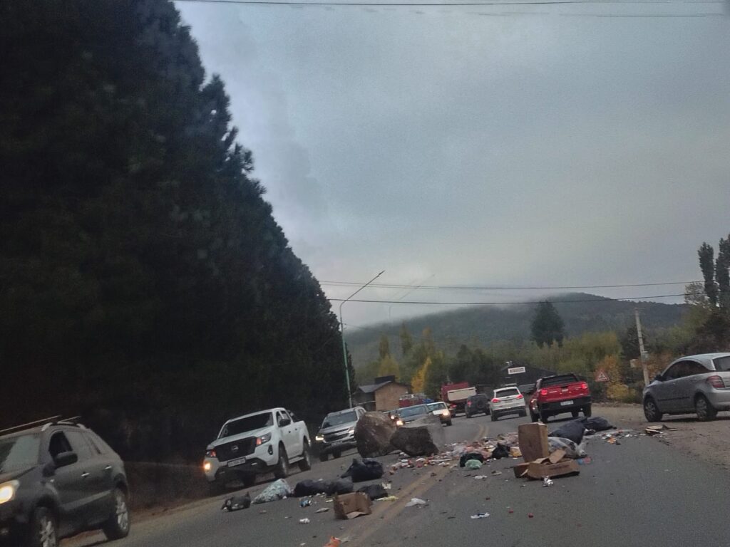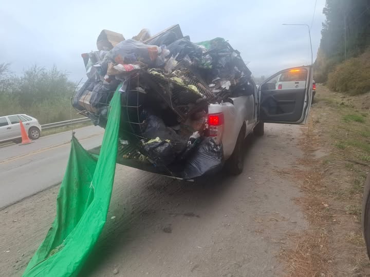 Como en la caja de la camioneta había basura, esta se desparramó por toda la ruta 40. El personal del área de Protección Civil de San Martín de los Andes llegó minutos después del despedimiento y cortó la circulación para poder reacondicionarla.