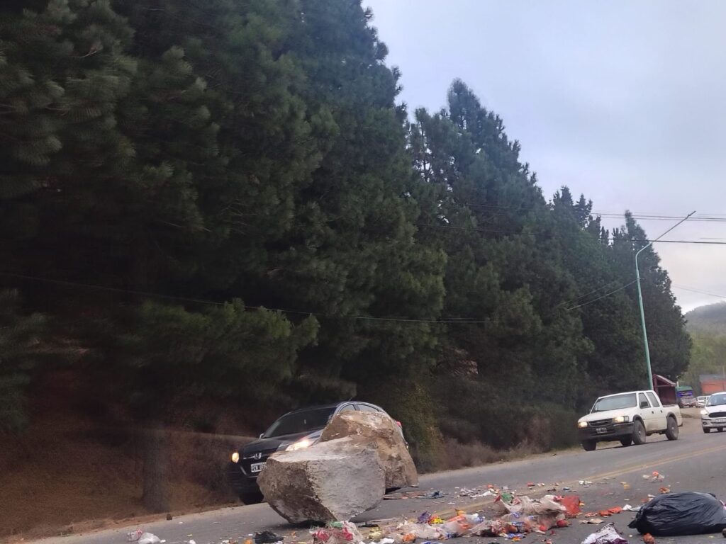 “Cayeron dos piedras en el sector de la Ruta 40 cercano al supermercado La Anónima. Se trata de piedras de gran porte de unos 300 kilos cada una”, informó el funcionario.