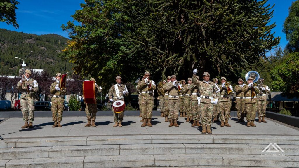 Las interpretaciones del Himno Nacional Argentino, del Himno de la provincia de Neuquén, y de la Marcha de Malvinas estuvieron a cargo de la fanfarria militar “El Hinojal”, del Regimiento de Caballería de Exploración de Montaña 4 “Coracero General Lavalle”.