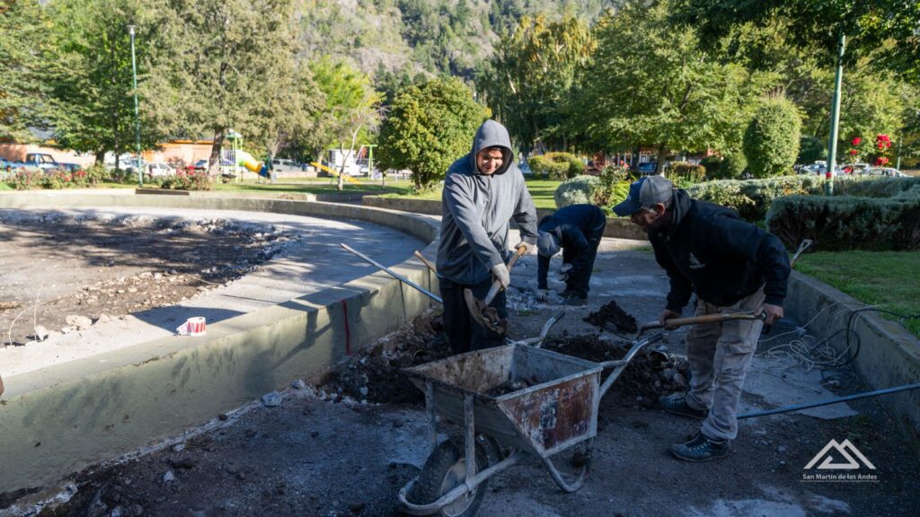 Mientras tanto, avanzan los trabajos en la Plaza Centenario, donde se instalará el espacio que recordará a las nacionalidades de quienes llegaron a San Martín de los Andes antes de 1950.