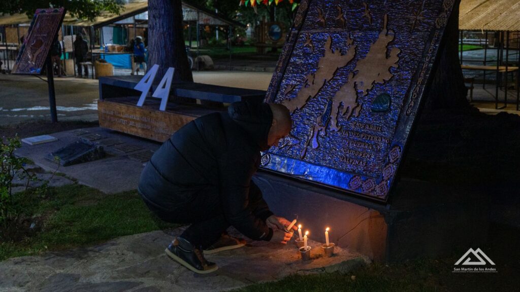 Tras la invocación religiosa a cargo del padre Alberto Rossi, la vigilia continuó en la Plaza San Martín, con la presencia de la Fanfarria El Hinojal; la entonación del Himno Nacional Argentino, la Marcha de Malvinas y otras interpretaciones alusivas, y la colocación de 44 velas para honrar a los 649 argentinos fallecidos y a los combatientes del conflicto de 1982.